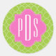 Adesivo Redondo Cor-de-rosa + Monograma de Quatrefoil Verde