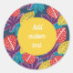 Texto personalizado no adesivo floral tropical com frutas, morangos, folhas. Vestido, feliz, colorido, verde, moderno amarelo para empacotamento, negócios, bolsas, ou para aniversário feminino, festa feminina. Para mulheres, mães, adultos que amam ilhas tropicais, viagem, hawaii, autocolante personalizado com texto, nome, informação, mensagem
