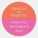 Este adesivo ousado e brilhante é a adição perfeita aos detalhes do dia do seu casamento. Este adesivo colorido apresenta laranja vibrante e blocos de cor magenta completos com texto personalizável. Tudo é editável e este design combina com a suíte colorida de casamento na minha loja Zazzle. Você pode até mudar as cores para corresponder às suas próprias necessidades!