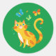 Kelly verde, cor sólida, gatinho olhando para as borboletas coloridas.