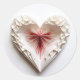 Branco com elementos vermelhos, coração origami em fundo branco.