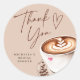 Adesivo Redondo Clássico Coração de Agradecimento para Chá de Noiva de Café Moderno