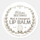 Rótulo labial de cera de abelhas odorosa artesanal. Branco com emblema de abelha dourada "emboscada" e vintage de cor esticada, em relevo e texto ilustrado. Coração de ouro metálico rodeado com texto em ouro: 100% Pura - Feita Por Abelhas. Rótulo profissional para apicultores e artesanato doméstico: ingredientes com texto descritivo curto em texto curvo na parte inferior do rótulo.