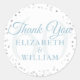 Coração de confete de aniversário de 60 anos, obrigado adesivo redondo clássico. Apresentando delicado confete de coração. Personalize com seus nomes em letras azuis elegantes. Criado por Thisisnotme©