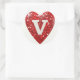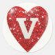 vinheta grande de 3" de diâmetro do coração de brilho vermelho com a letra V.