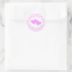 Adesivo redondo com texto Personalizável. Um coração conectado cor-de-rosa rodeado por muitos corações pequenos e texto Personalizável. Perfeito em sacos de presentes para os convidados do casal. Estes Adesivos podem ser usados em muitas ocasiões, casamentos, aniversários ou outro evento - Personalize o texto para se adequar ao seu evento. Compartilhe o amor.