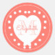 Este adesivo redondo apresenta um fundo coral com um coral e design branco para o primeiro nome e a letra inicial monograma sobre o coração branco rodeado de pontos. Personalize-o nos campos de texto com um primeiro ou sobrenome e inicial, remova o texto ou clique em personalizar para selecionar um estilo de tipo, tamanho e cor preferidos. Se você quiser o coração e pontos em uma cor específica que eu estou feliz em trabalhar com você, envie um e-mail para mim em theaspenstand@hotmail.com.