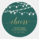 Este adesivo personalizado chic adicionará detalhes de na moda ao seu dia especial. Este design apresenta a inscrição dourada " Cheers " e as luzes de cordas em um fundo verde esmeralda. Convites de festas e suprimentos correspondentes estão disponíveis no meu compro BaraBomDesign.