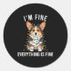 Adesivo Redondo Corgi Christmas I'm Fine Everything Is Fine
