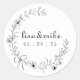 Adesivos de casamento personalizados com um caprichoso e elegante desenho de coroa de flores.