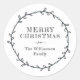 Adesivo Redondo Coroa de Louro de Natal Feliz Nome Preto Branco