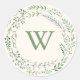 Adesivo Redondo Coroa de Monograma de Aguarela Elegante com Folhas