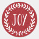 Este adesivo festivo vermelho e branco apresenta a palavra "Joy" escrita à mão, rodeada por uma linda coroa de Natal. Perfeito para usar como selo de envelope ou em embalagens de presentes.
