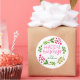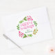 Adesivo Redondo Coroa de Natal Feliz Rosa e Branca Personalizada