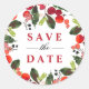 O design festivo de adesivo e selo de envelope de Natal apresenta um belo design de folhagem de Natal em aquarela com folhas de azevinho verdes e frutos vermelhos que enquadram o elegante "Salve a Data" com texto de ano personalizado.