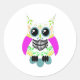 Adesivo Redondo Coruja Branca, Múltipla Rosa, Crânio