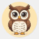 Adesivo Redondo Coruja de Desenho Animado Adorável Com Olhos Grand