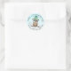 Coruja de aquarela branca personalizada com chapéu de inverno bonito sentado num galho com fundo de flocos de neve, adesivos de Natal azuis.