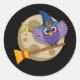 Adesivo Redondo Coruja do Cartoon voando na vassoura