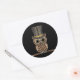 Adesivo Redondo Coruja Estamponeira Bonita em um Ramo em Preto