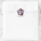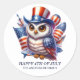 Um adesivo patriótico com uma bandeira americana vermelha, branca e azul e uma coruja vestindo um chapéu de cima, e celebrando o 4 de julho. Personalizado com texto, "Feliz 4 de julho" e seu nome ou nome da família. Entre em contato comigo para obter assistência com suas personalizações ou para solicitar outros produtos Zazzle correspondentes ou coordenadores