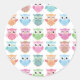 Um adesivo redondo mostrado com um impressão de corujas giro. Personalize este item ou comprar como está.