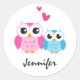 Adesivo Redondo Corujas de cartoon bonitas com nome personalizado