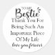 Este design oferece uma mensagem sincera e amorosa para o seu melhor amigo. Com a citação "Para minha Bestie, obrigado por ser uma peça tão importante da minha vida, te ama para sempre", é uma maneira perfeita de expressar sua gratidão por sua amizade. É um lembrete do vínculo persistente e do impacto duradouro que ela tem na sua vida... Presentes exclusivos de amizade para mulheres Namorados de Natal amigas Dias de as mães