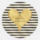 Adesivo Redondo Cota Dourada Black White Stripes Heart