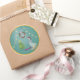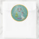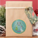 Add a soft touch of vintage holiday charm to your tree or gifts with this elegant sticker featuring a festive goose dressed in a ribboned hat and bow. A delicate teal background, twinkling lights, and a classic Christmas wreath. Gentle rose and blush tones with gold sparkle accents. . A template sticker to add your personal text on the back and or front.