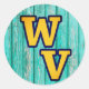 Campo Primitivo do Velho Parque Florestal West Virginia Se você conhece e ama o estado excelente da WV, então você vai adorar esta design. Apresenta as letras W V que estão na cor Dourada Amarelo mais famosa e descritas em Púrpura. A letra do texto de inscrição fica bem em um antigo, verde azul, em apuros, plano de fundo de pintura. A textura de madeira tem um estilo antigo e caseiro, com charme rústico que é simplesmente espantoso. Mostre a esse bom e velho país West Virginia Blue e Dourado orgulho com este design.