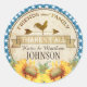 Adesivo Redondo Country Sunflower Blue Gingham Check Obrigado