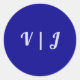 Adesivo Redondo Couple’s Initials on Dark Blue Small Round Sticker