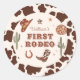 Adesivo Redondo Cowboy First Rodeo Wild West Festa de aniversário
