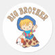 Um cowboy bonito de chapéu azul e botas em uma camisa colorida com filhote e texto 'Big Brother, perfeito para o amante do rodeio oeste do país. Tem designs de irmão e irmão médio correspondentes disponíveis.Cor de fundo personalizável.