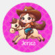 Adesivo Redondo Cowgirl e Horse Ocidentais Rosa