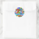 Um botão vibrante alegre e um design com tesoura. Perfeito como um adesivo de prêmio quando crianças jovens aprendem a costurar um botão, excelente para a escola em casa! Personalize-o e adicione o texto de sua escolha. Hoje em dia todos nós precisamos costurar e salvar, fazer e consertar! Transforme algo antigo em algo novo. Isto é realmente uma coisa divertida de se fazer!