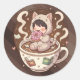 Adesivo Redondo Cozy Cat Coffee Adventure Art