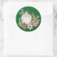 This charming round sticker features a steaming mug of hot chocolate crowned with a swirl of whipped cream, radiating warmth and comfort. Surrounding it are festive delights—striped candy canes, smiling gingerbread cookies, fragrant cinnamon sticks, and delicate sprigs of pine dusted with golden glitter. Perfect for sealing gift wrap, decorating holiday cards, or adding a cozy flourish to your seasonal crafts, this sticker captures the magic of a winter’s evening by the fire.