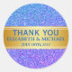 Adesivo Redondo Crachá Dourado brilhante Azul Obrigado