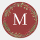 Adesivo Redondo Cranberry Red Rustic Christmas Wreath Monogram