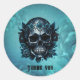 Adesivo Redondo Crânio azul escuro com rosas.