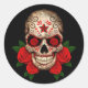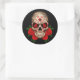 Adesivo Redondo Crânio de açúcar escuro com Rosas vermelhas