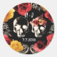 Adesivo Redondo Crânio de Esqueleto Vermelho Amarelo Outono Floral