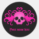 Adesivo Redondo Crânio de gótico rosa-menina em preto