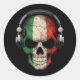 Adesivo Redondo Crânio Dj Italiano Personalizável com Fones de ouv