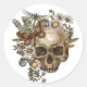 Adesivo Redondo crânio e borboletas de flores de colheita gótica