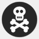 Crânio simples e bandeira pirata de bósseis desenhada em um adesivo.