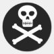 Ossos do crânio branco sobre fundo preto. Dar um adesivo a pijama assustadora e traficante, juntamente com os doces.