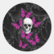 Adesivo Redondo Crânio fantasma e borboletas rosa-quente